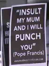 Francis, who warned that people who mock religion are asking for a punch. He said: I think in a free society, there is a right to cause offence about someone's religion. I'm a Christian - if someone says something