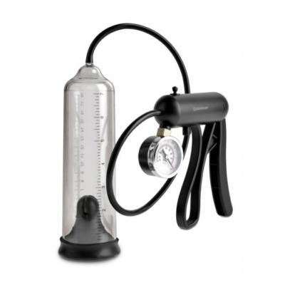 The clear, vacuum cylinder allows you to see your cock get bigger and fatter with each squeeze of the lever, while the easy-read gauge lets you know