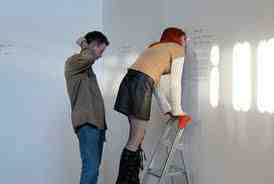 Forbidden Art 2006 featured works that were rejected by Russian galleries and museums for political or religious reasons. The artworks were put behind a false wall with peep holes in it high above the floor, and visitors had to climb up onto a
